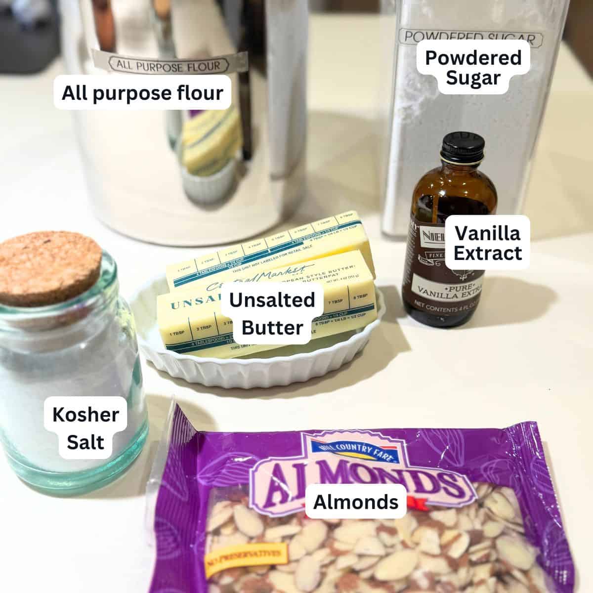 These are one of my favorite cookies and they are so simple. They are an all butter cookie (kind of like a shortbread) but with the addition of ground almonds in the dough. They have a crumbly delicious texture and they taste a lot like Italian wedding cookies.